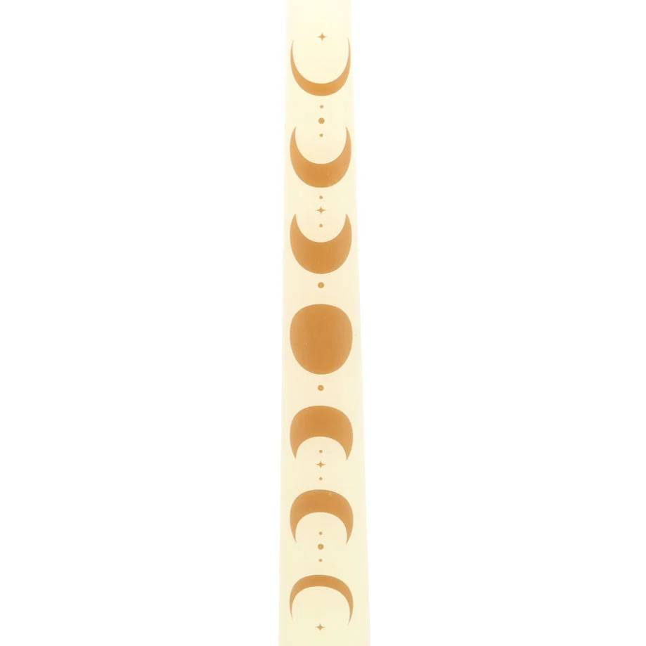 This boxed set of three tapered dinner candles are an off-white/cream colour and are adorned with a gold moon phase design.